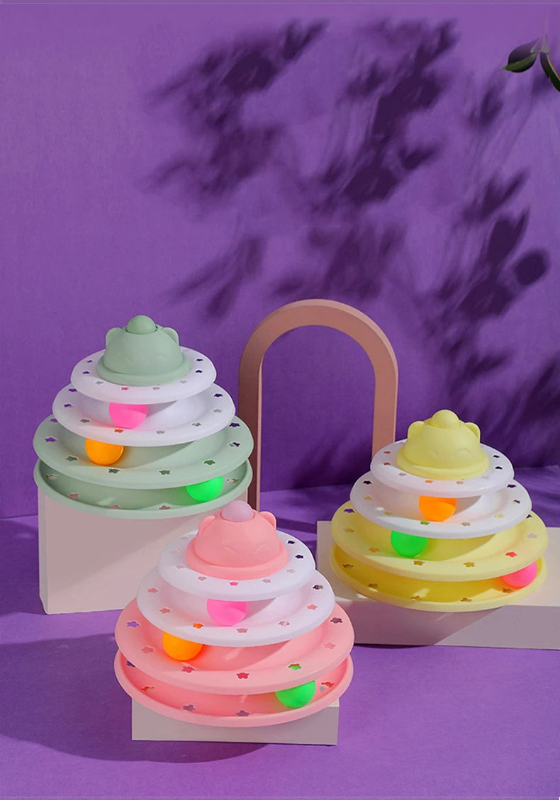 4 Levels Cat Toy Tower Turntable Roller Balls Toys Interactive Intelligence Training Track Puzzle Funny Games Accessories