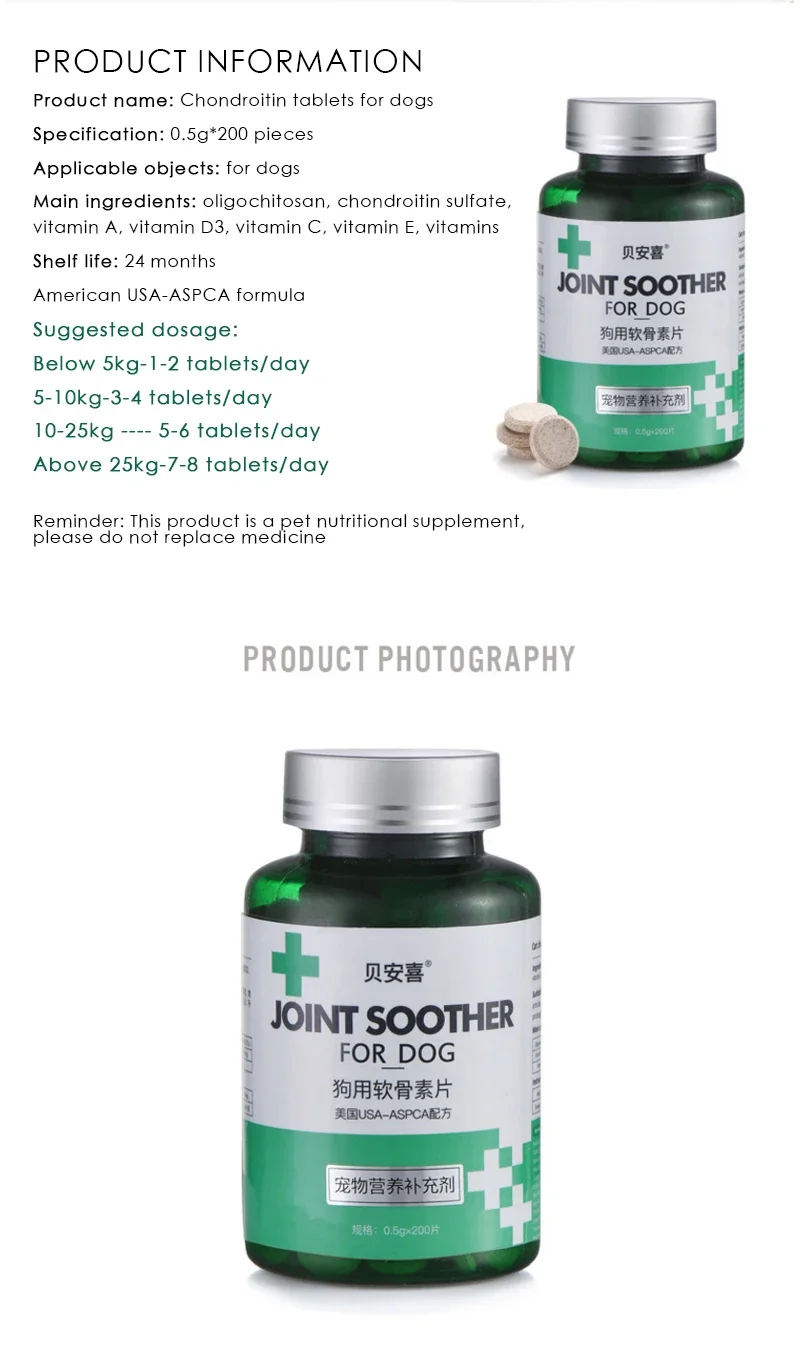 Chondroitin tablets for pet dogs, lubricating and protecting joints, supplementing nutrition for elderly dogs 200 tablets