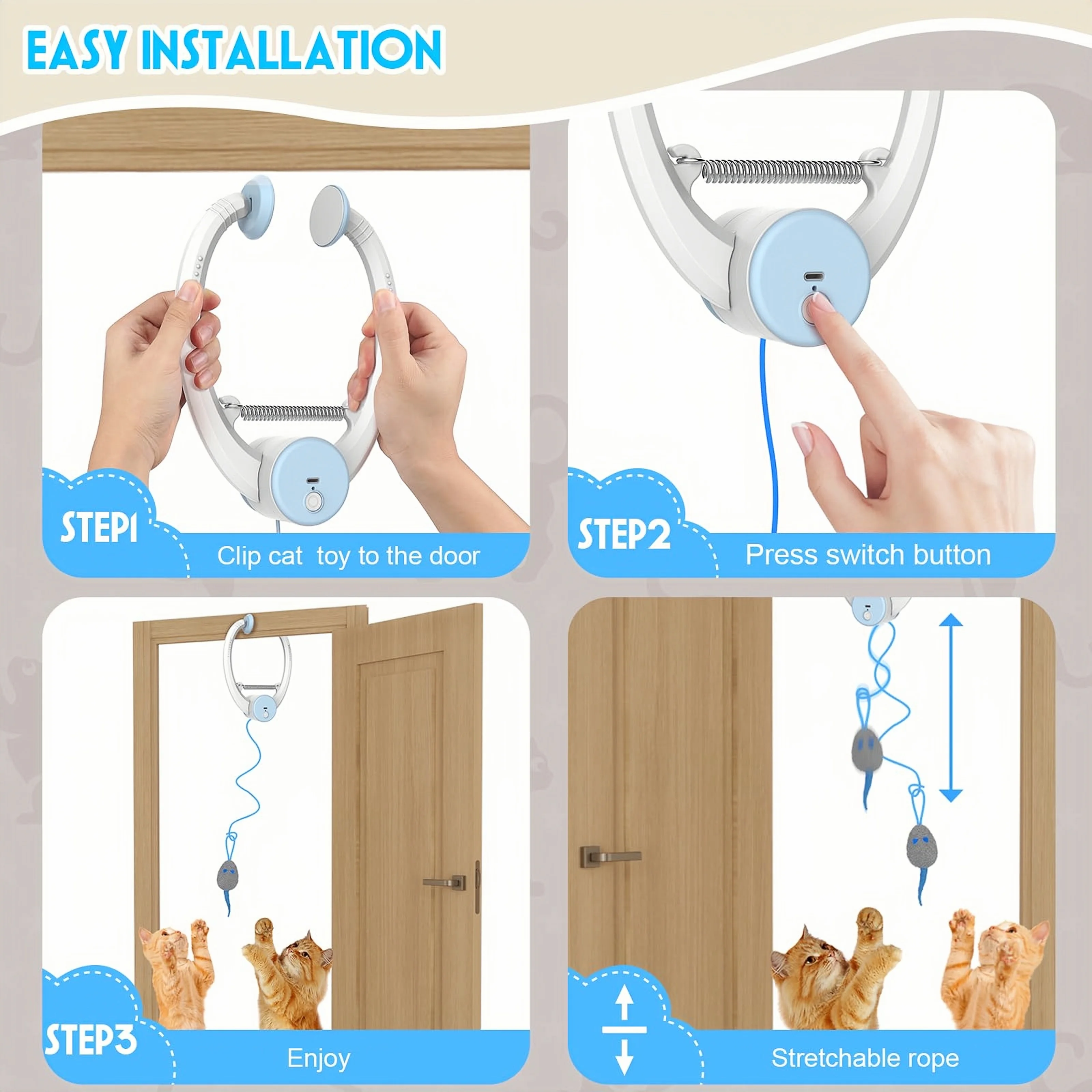 【Upgraded Electric Cat Toy】Interactive Door-Hanging Pet Toy with Automatic Rebound Function - Mimics Human-Cat Play Patterns for Self-Entertaining Kitten Exercise When Alone at Home