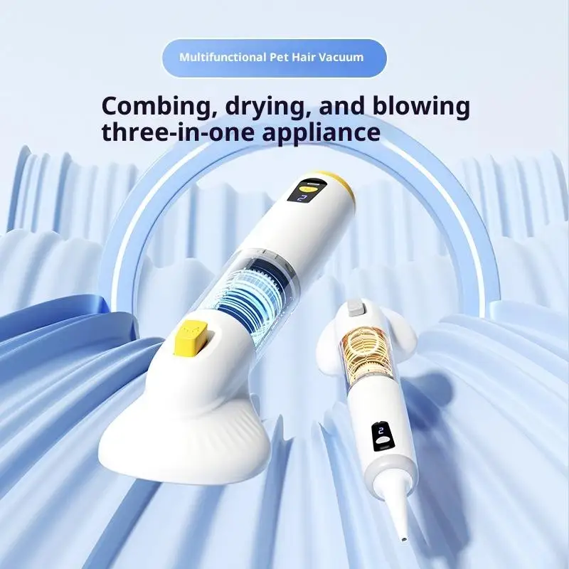 1. Integrated design: The combing and suction integrated machine combines the functions of combing pet hair and cleaning flying hair, eliminating the tedious steps of combing and cleaning at the same time, making pet care easy and convenient.