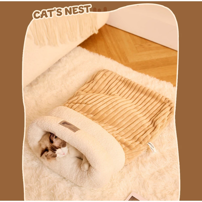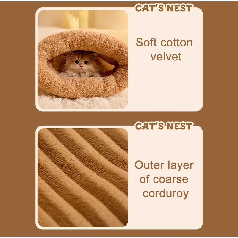 1. Selected materials: Our cat sleeping bag is wrapped in selected materials, bringing unparalleled comfort to your furry friends. The high-end design ensures a safe and warm rest, while the cute appearance will complement any room.