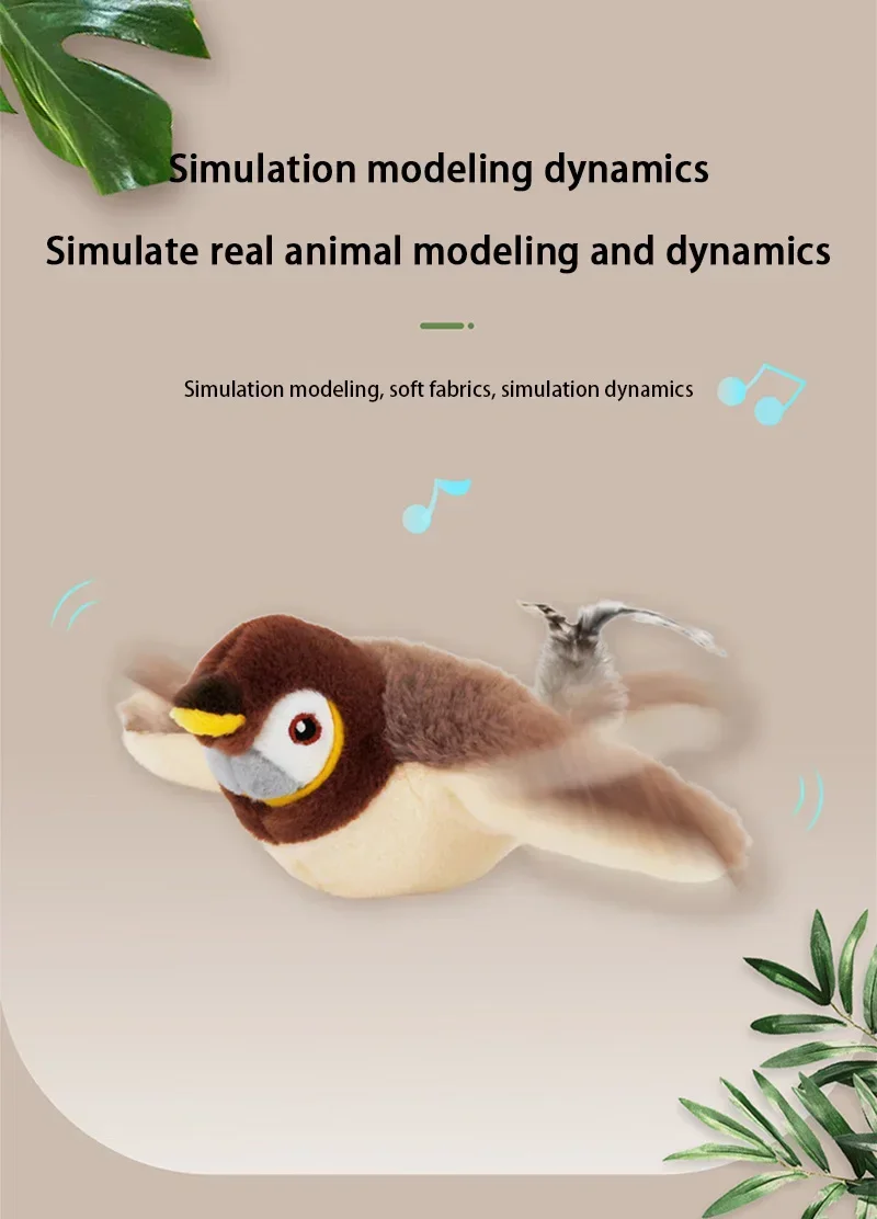 Interactive Cat Toys Rechargeable Flying Bird Rat Cat Toy Chirping Flapping Bird Can Add Catnip Touch Activated Plush Toy