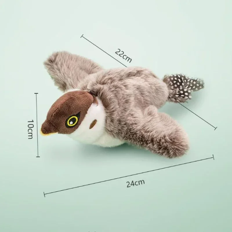 This product features a beautiful bird design. The toy comes with rechargeable batteries that power the bird to flap its wings and make chirping sounds. In addition to its realistic bird-like movements, the toy's interior is filled with catnip, which will attract your cat to come play and explore the toy. whether your cat wants to hunt the bird or just snuggle up to it, this toy is perfect for them.