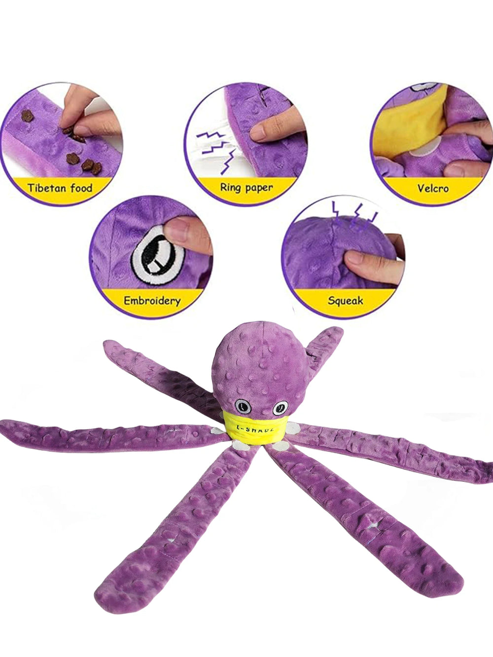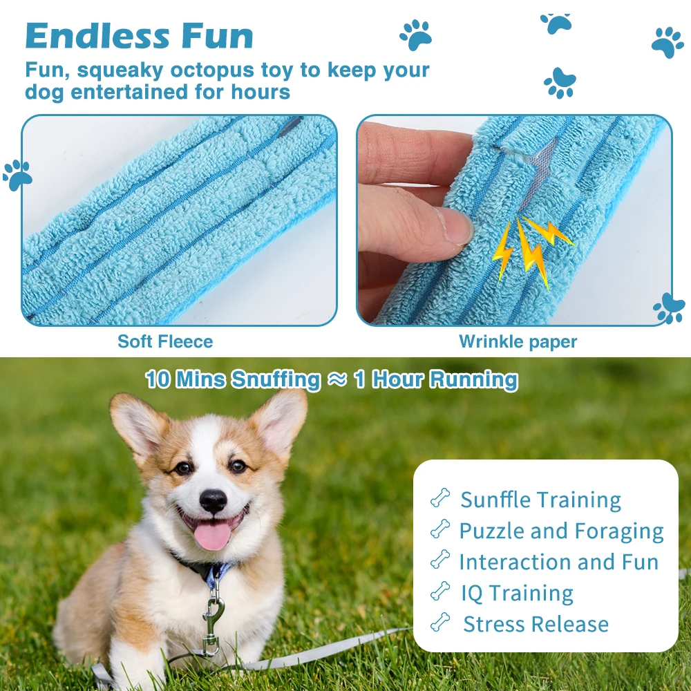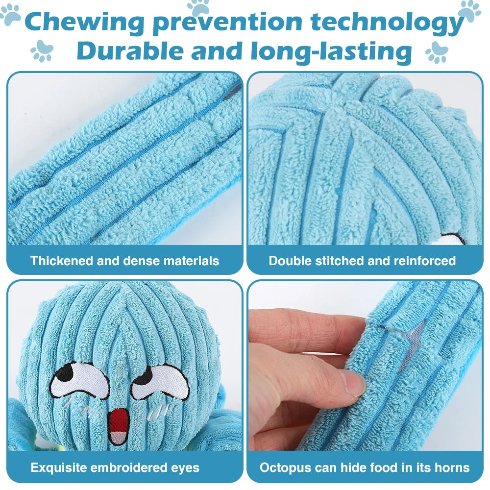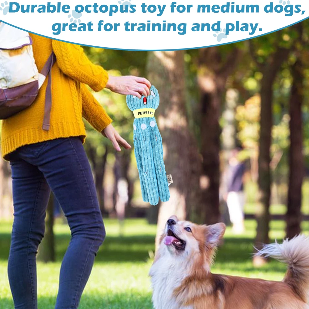 Interactive Fun for Your Dog: This octopus-shaped dog toy features a squeaker in its head and crinkle paper in its tentacles, providing endless entertainment and mental stimulation for your furry friend. The playful sounds and textures keep dogs engaged and happy.